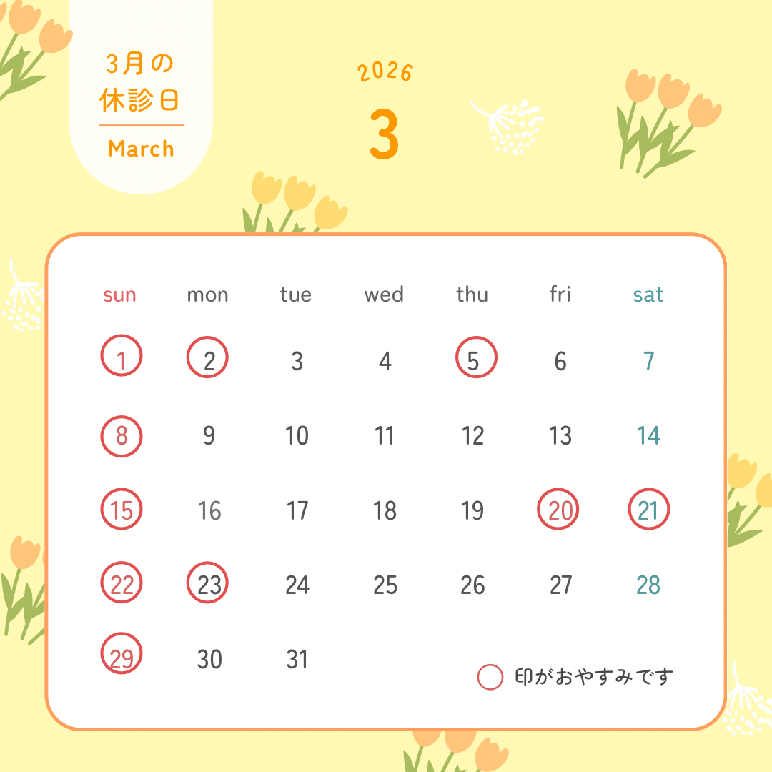 3/2(月)、3/5(木)、3/21(土)、3/23(月)です